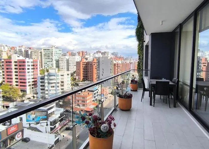 O Essence Panoramic Terrace Suite Private 11Th Floor Views Quito de 80 m² está localizado no bairro La Carolina em Quito a aproximadamente 25 minutos a pé de Museu Etnohistorico de Artesanato do Equador Mindalae e oferece banho turco, banheira quente e piscina interior. Os hóspedes deste apartamento de 2 quartos, situado a um curto caminho de Parque La Carolina, podem utilizar centro de fitness e piscina em ambiente fechado.